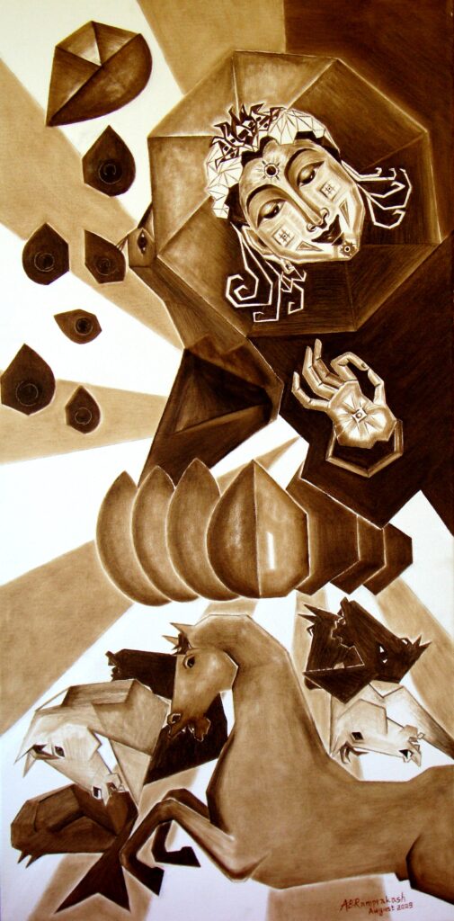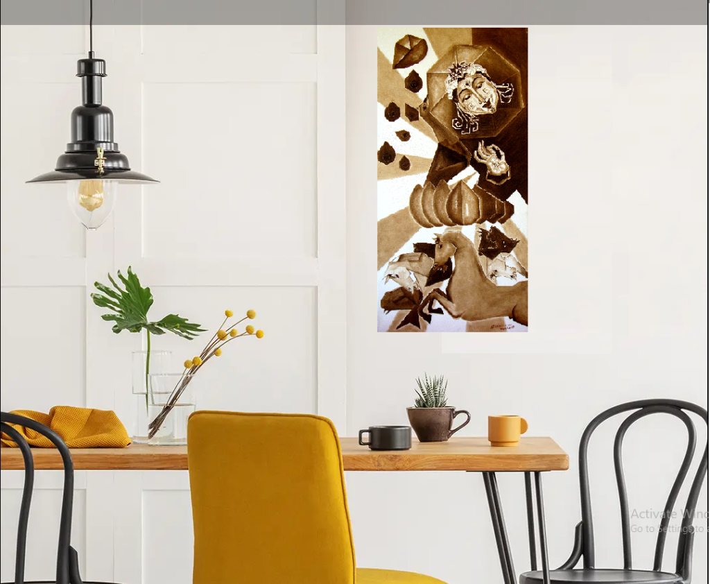 Spectacular Monochrome ‘Sun God’ cubist Painting for Corporate office, Industrial Factory offices, Star Hotels, Art collectors, Residences etc.