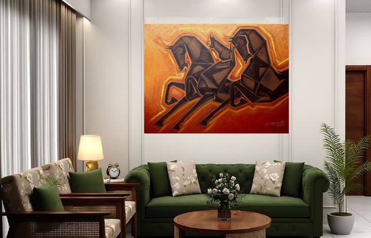 CONTEMPORARY CUBIC STYLE PAINTING OF ARABIAN HORSES (Arabian Horse breed is known for its distinctive head shape and high tail carriage) FOR CORPORATE OFFICES / RESIDENCE / INDUSTRIAL FACTORY OFFICES / STAR HOTELS / ART COLLECTORS