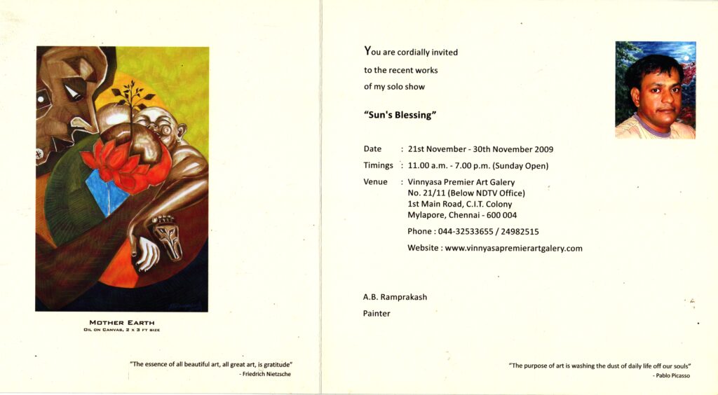 INVITATION solo show “Sun’s Blessing” by A.B.Ramprakash 21 Nov-30 Nov 2009. Venue : Vinnyasa Premier Art Gallery, Mylapore, CHENNAI.